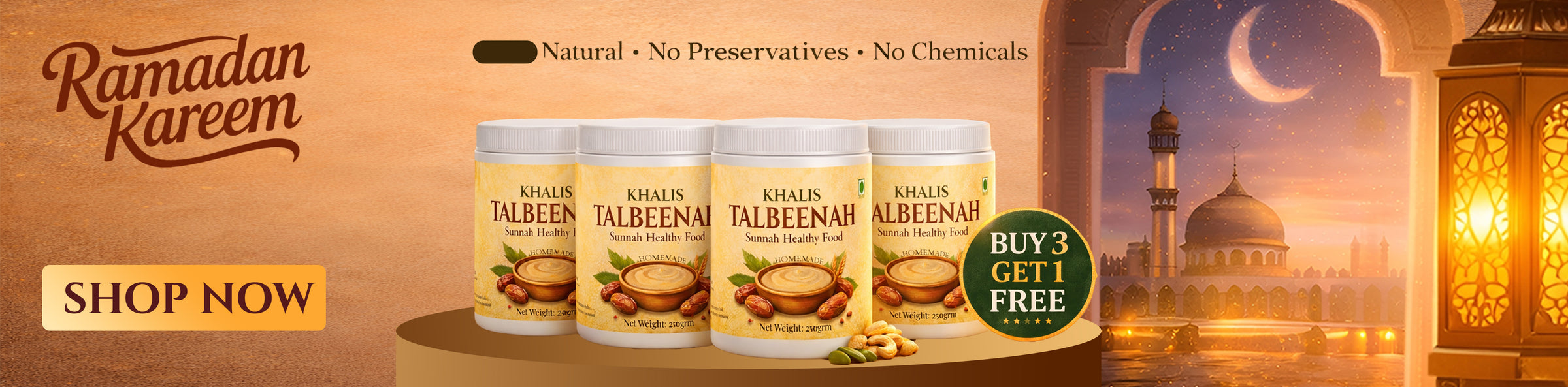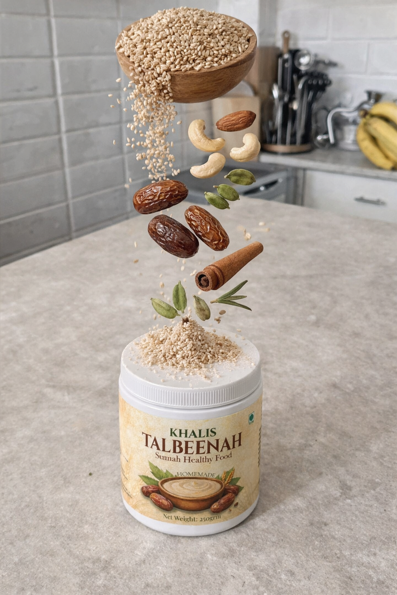 Talbeenah is a traditional nourishing porridge made from barley, milk, and honey. Mentioned in Islamic tradition for its healing properties, it brings comfort and warmth to the soul. Each spoonful is a gentle reminder of nature's simple gifts and timeless wisdom.